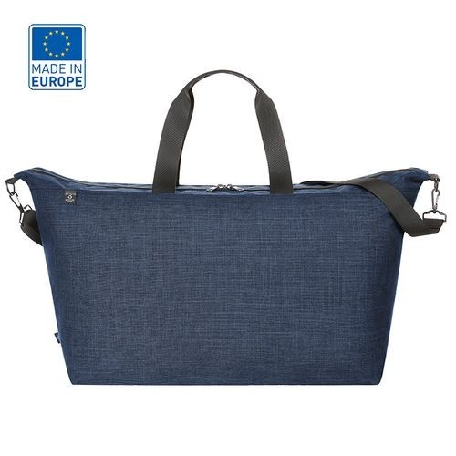 Sac de sport/voyageEuropeMatière: Polyester recyclé 600dGrand compartiment principal avec double-curseurLitrage : 44 LPoche intérieure zippéeAnses noiresPassants pour différentes option de transportBandoulière réglable amovibleSans PVCFabriqué en EuropeEspace d'impression: 36 x 25 cm sur l'avant